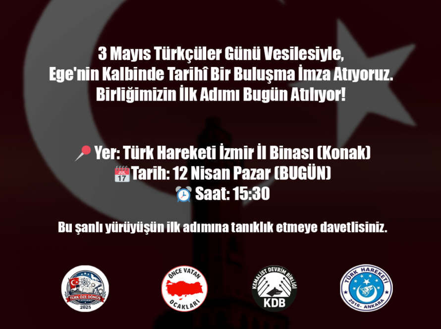 UncategorizedNisan 12, 202611Views0Likes0CommentsİZMİR’DE TÜRKÇÜ BİRLİĞİ : 3 MAYIS RUHUYLA TEK YUMRUK!